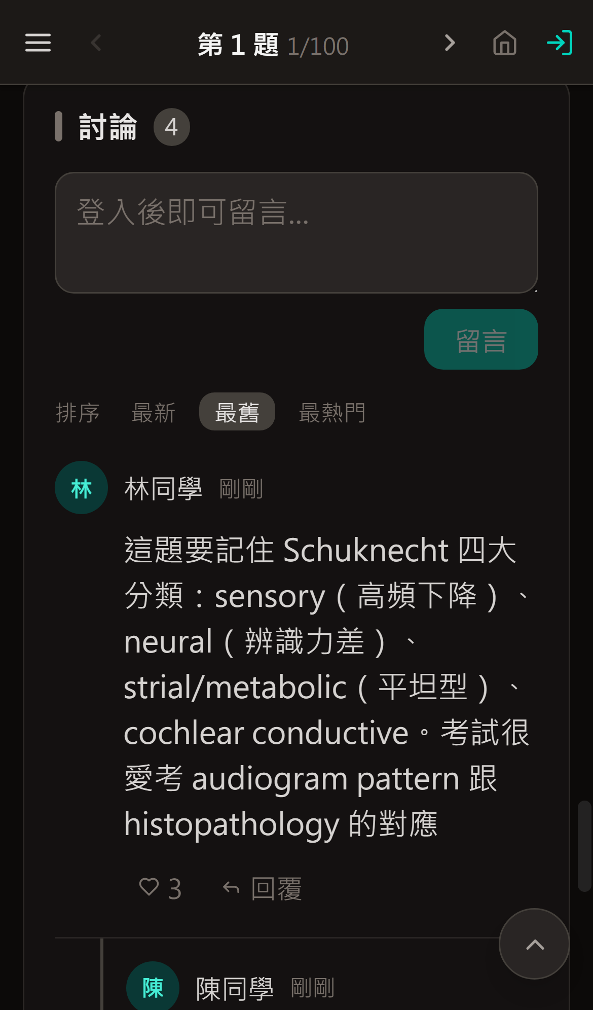 每題下方都有討論區,回報錯誤、分享解題思路、與其他考生交流——不是靜態 PDF,是活的學習社群。